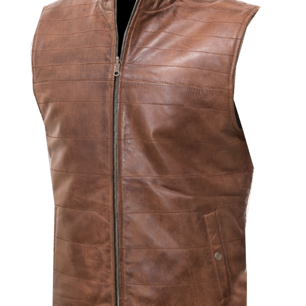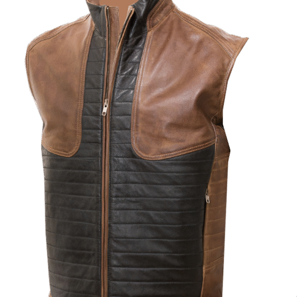 THE HUB LEATHER Contrast Brown Tan Vest Coat Genuine Leather for Men Distressed Wax Shaded Without Sleeves Vest Jacket