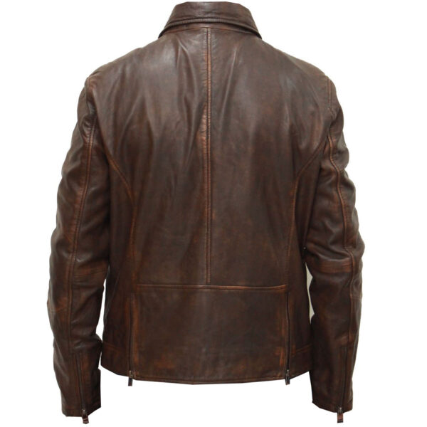 THE HUB LEATHER Vintage Genuine Leather Jacket for Men Brown Rub-Off Style Biker Jacket Regular Size