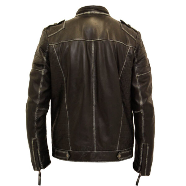 THE HUB LEATHER Bretchit Distressed Rub Off Black Real Leather Jacket for Men