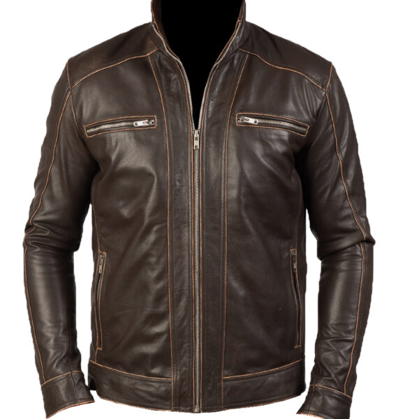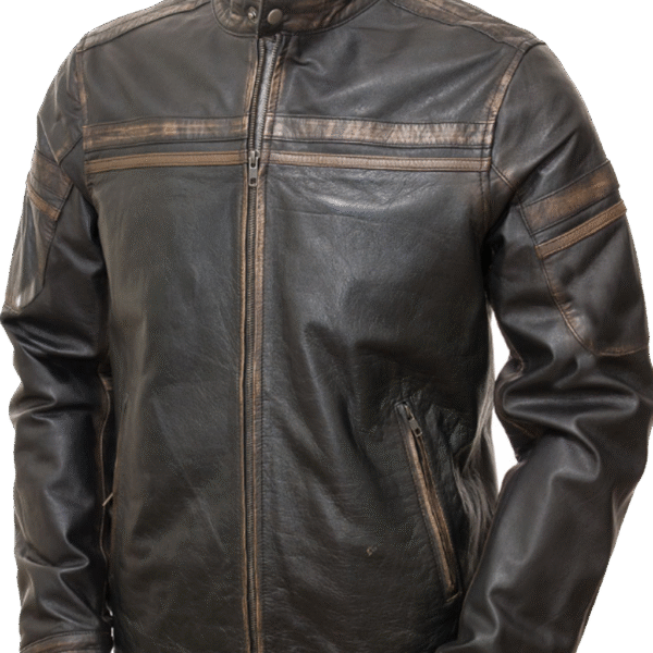 THE HUB LEATHER Retro Cafe Racer Jacket Genuine Leather for Men Vintage Rub-Off Style Regular Size