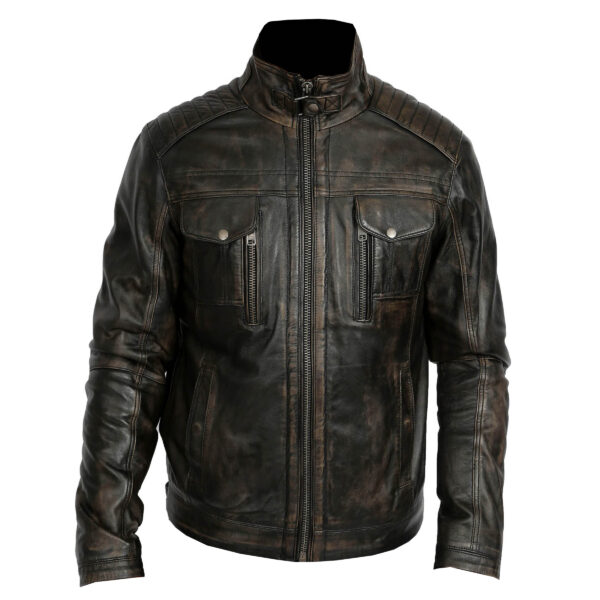 THE HUB LEATHER Bretchit Distressed Rub Off Black Real Leather Jacket for Men