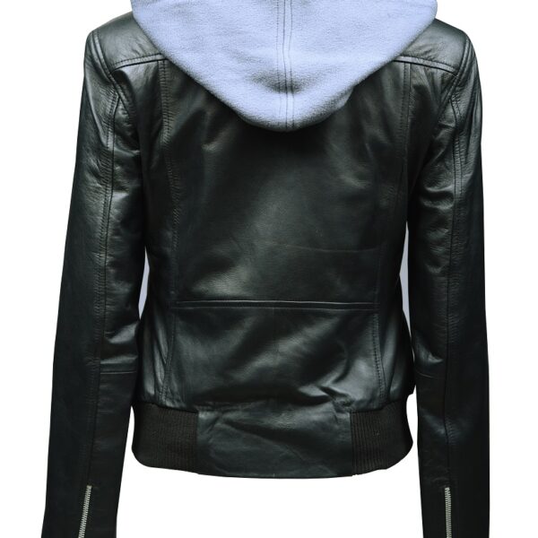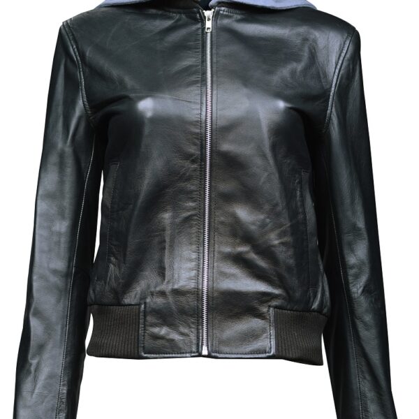 THE HUB LEATHER Spirit Black and Gray Hooded Bomber Real Leather Jacket Missy Plus Size