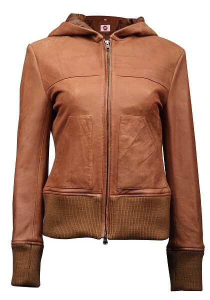 THE HUB LEATHER Pax Black Brown and Tan Bomber Hooded Real Leather Jacket Women Missy Plus Size