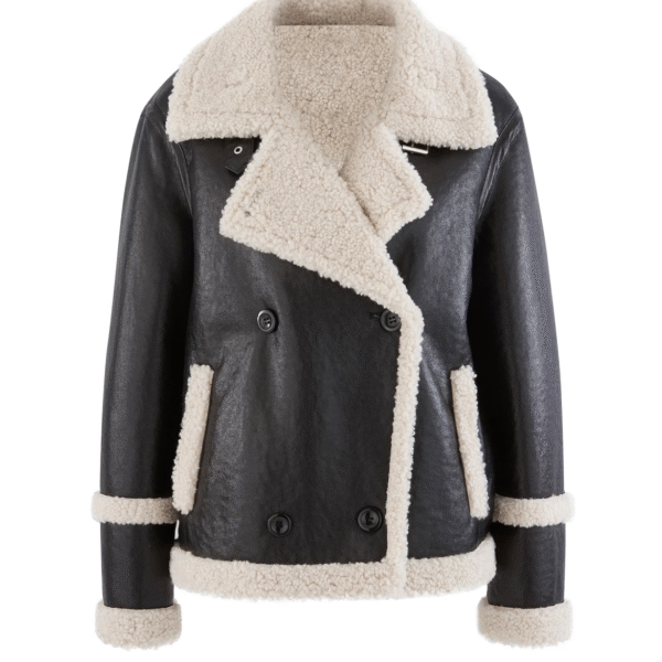 THE HUB LEATHER Shapior Shearling Fur Real Leather Blazer Designer Black Jacket for Women
