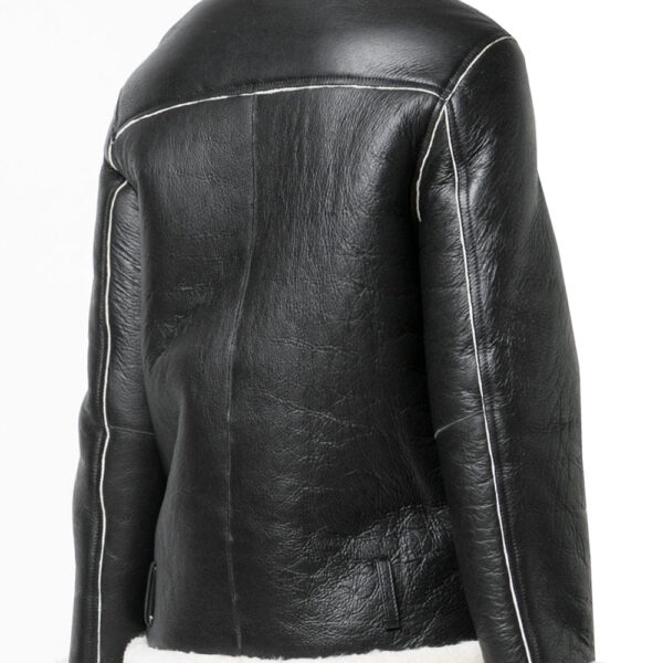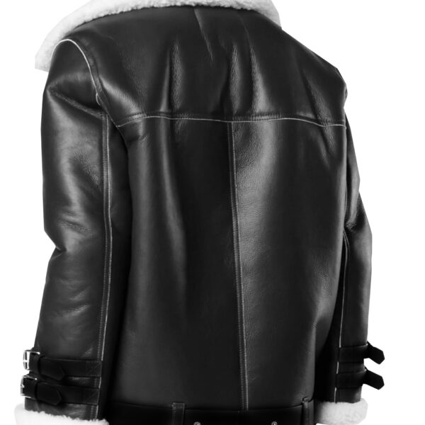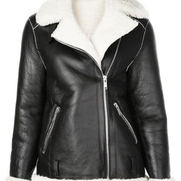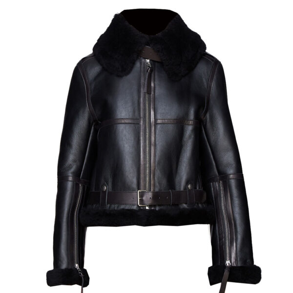 THE HUB LEATHER SnowWhite Women’s Shearling Faux Fur Real Leather Jacket Buckle Design Black